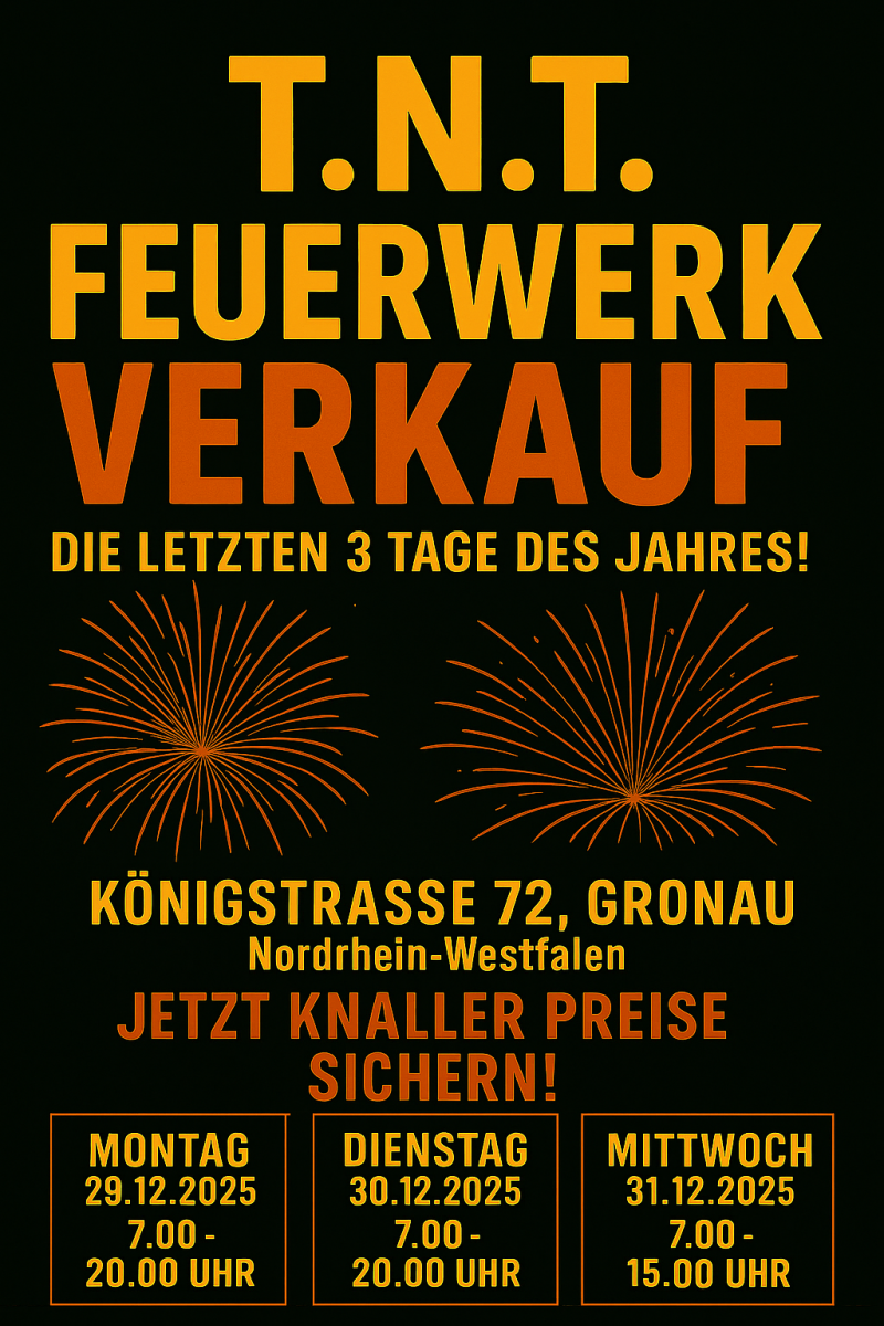 Profiteer van het gemak van online bestellen en haal uw vuurwerk af op onze locatie in Gronau Duitsland. Kies uit ons ruime assortiment, plaats uw bestelling en geef door welke dag en tijd u uw bestelling komt ophalen.. We zorgen ervoor dat uw bestelling klaar staat. Bekijk onze algemene voorwaarden voor meer informatie over bestellen en afhalen.